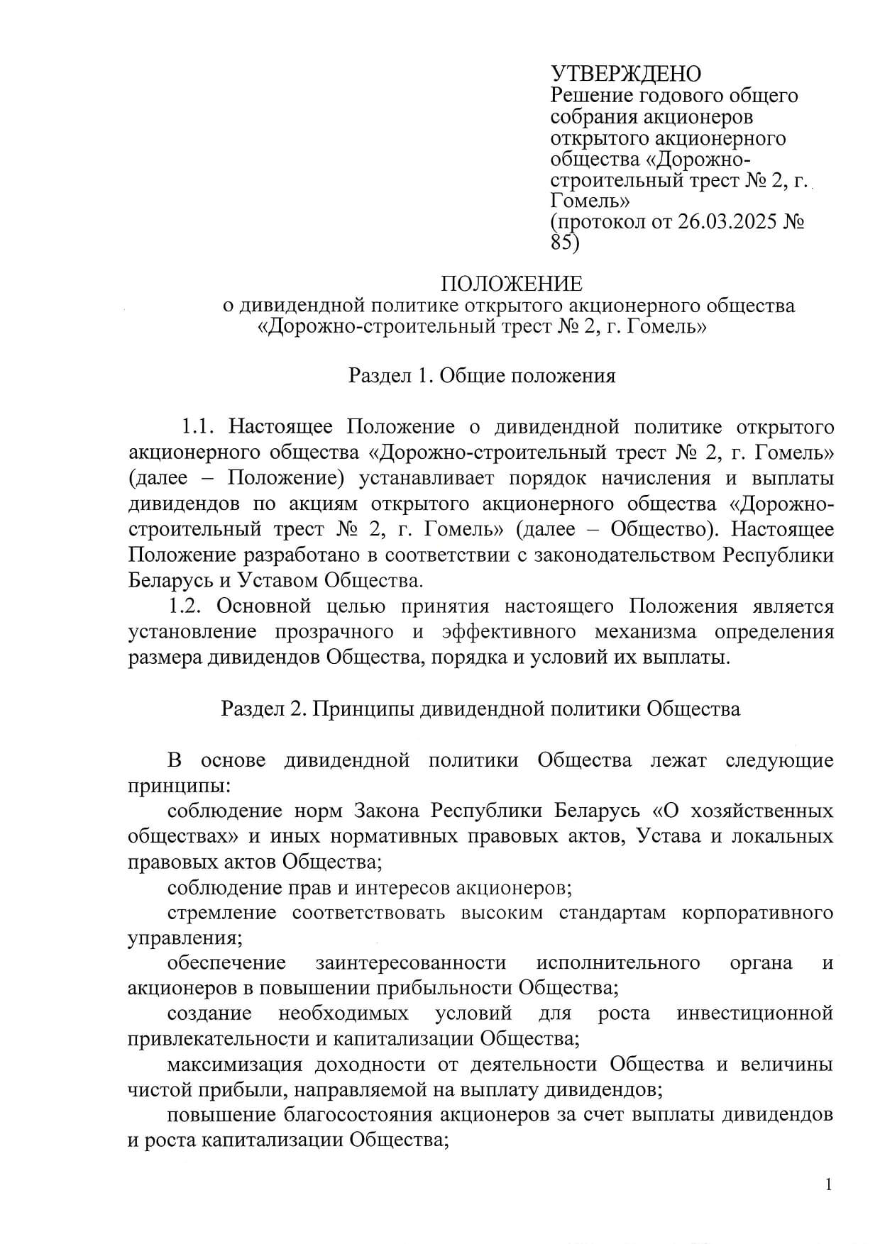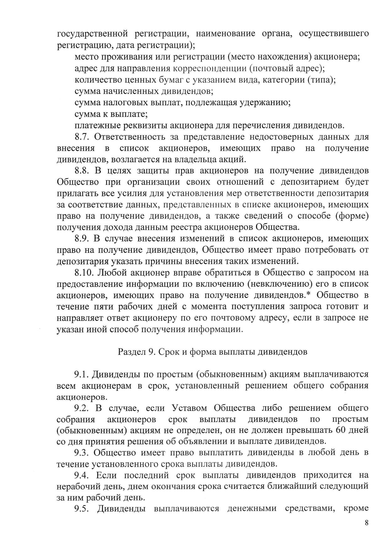 Положение о дивидендной политике