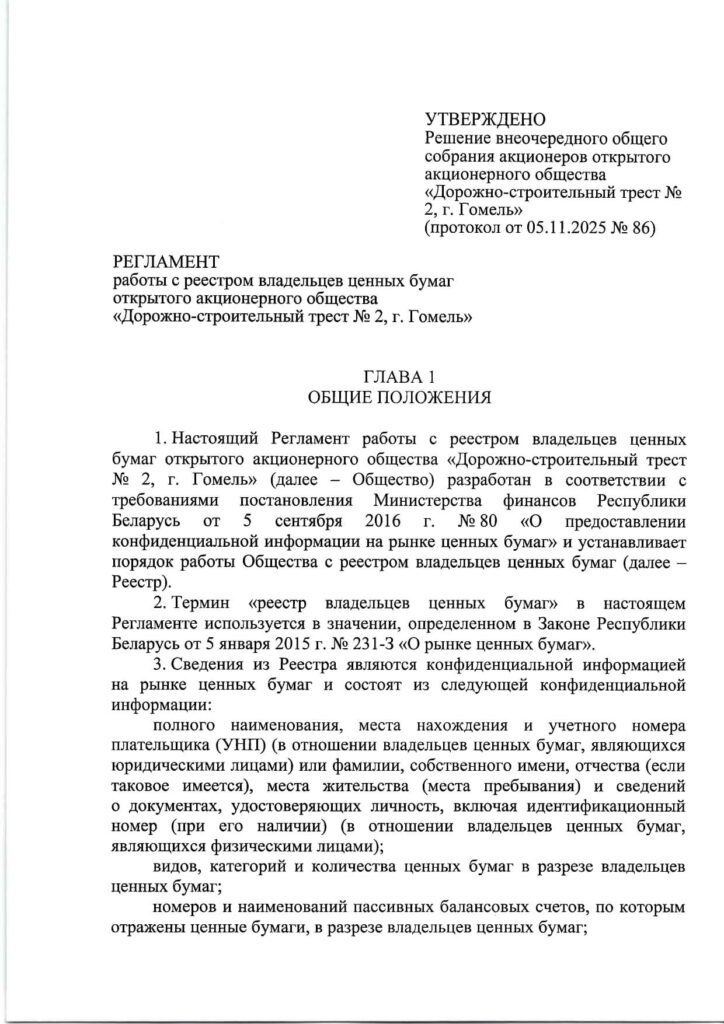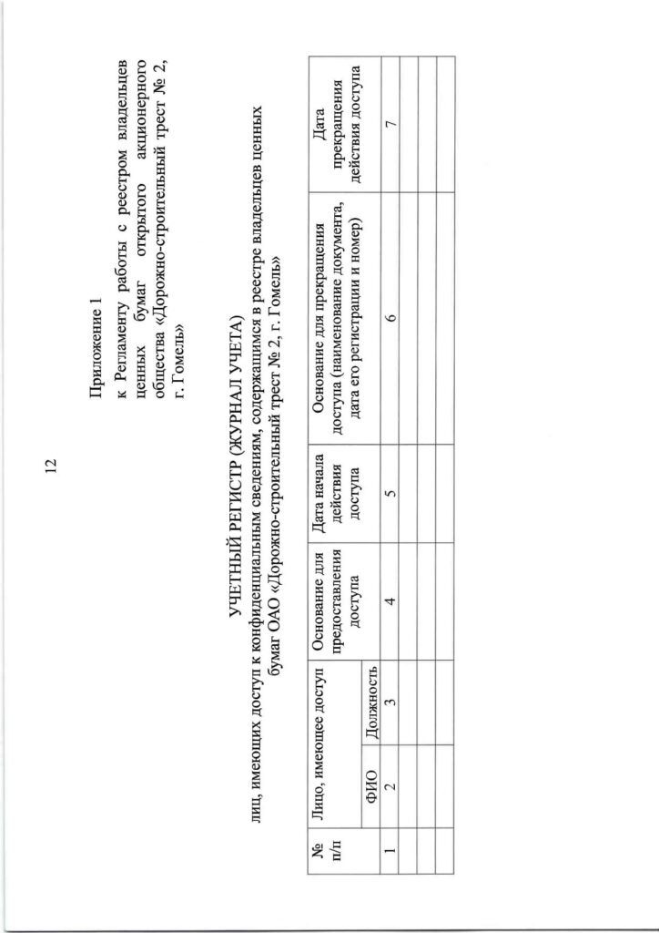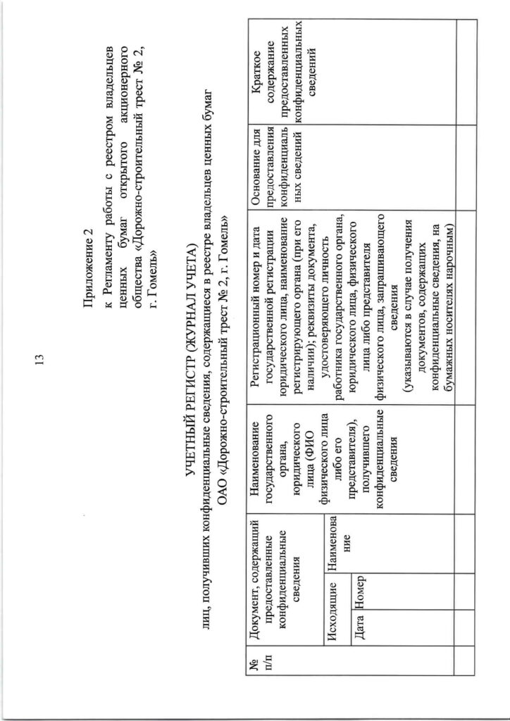 Главная - Документы - Основные действующие документы - Регламент работы с реестром владельцев ценных бумаг ОАО ДСТ № 2 г.Гомель